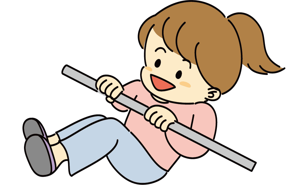 鉄棒・マット・縄跳び・とび箱などができるための基礎づくりと、上手にできるまでの過程を大切にしながら運動を楽しんでもらいます。