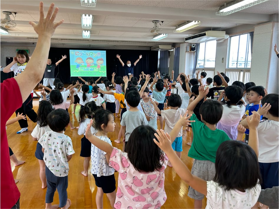 「にっこりマンボ」(オリジナル音楽)に合わせて簡単なダンス体操をします。