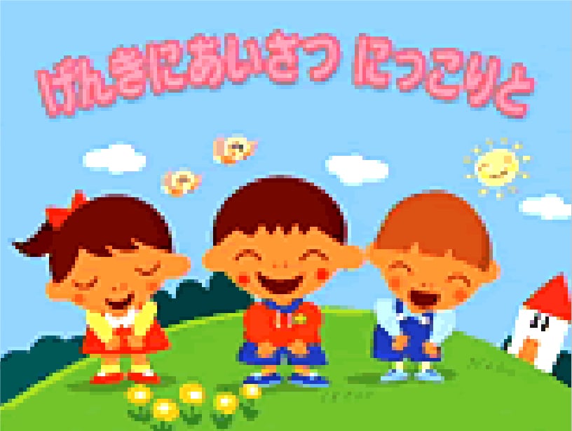 挨拶は、みんなと仲良くなれるおまじない。恥ずかしがらずに、大きな声で挨拶しよう。