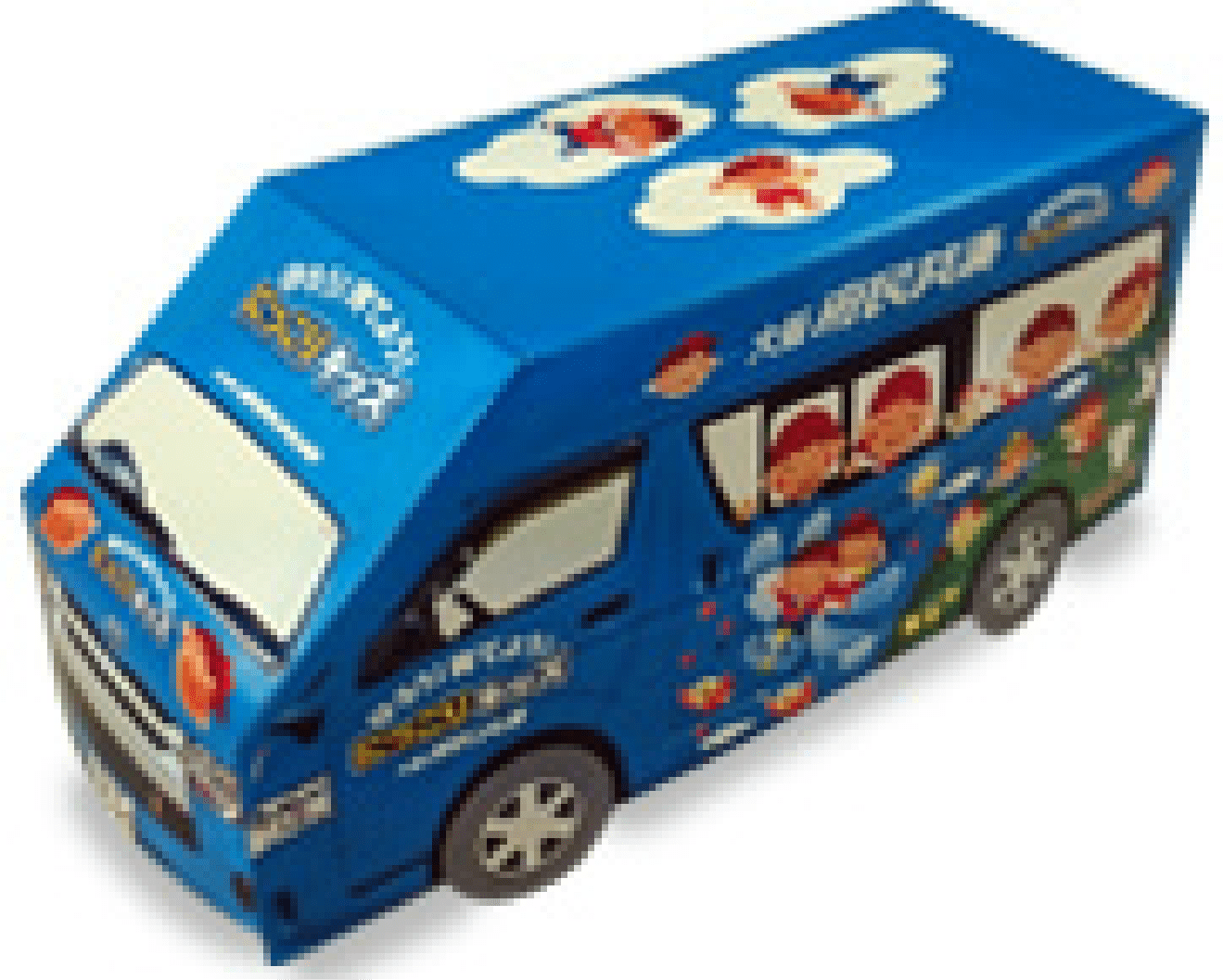 保育施設へご訪問する大阪府民共済のキャラバンカーです。